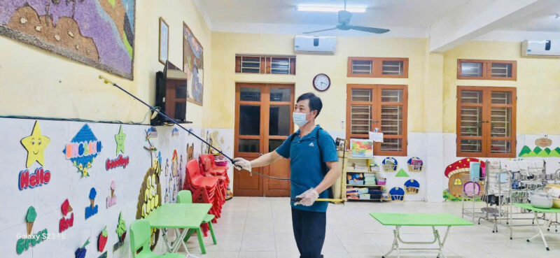 TRƯỜNG MẦM NON HOA SEN TỔ CHỨC PHUN THUỐC DIỆT MUỖI PHÒNG CHỐNG DỊCH BỆNH