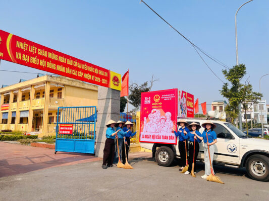 Đoàn Thanh niên trường mầm non Hoa Sen tổng vệ sinh chào mừng ngày Bầu cử đại biểu Quốc hội khóa XVI và đại biểu Hội đồng nhân dân các cấp, nhiệm kỳ 2026–2031.