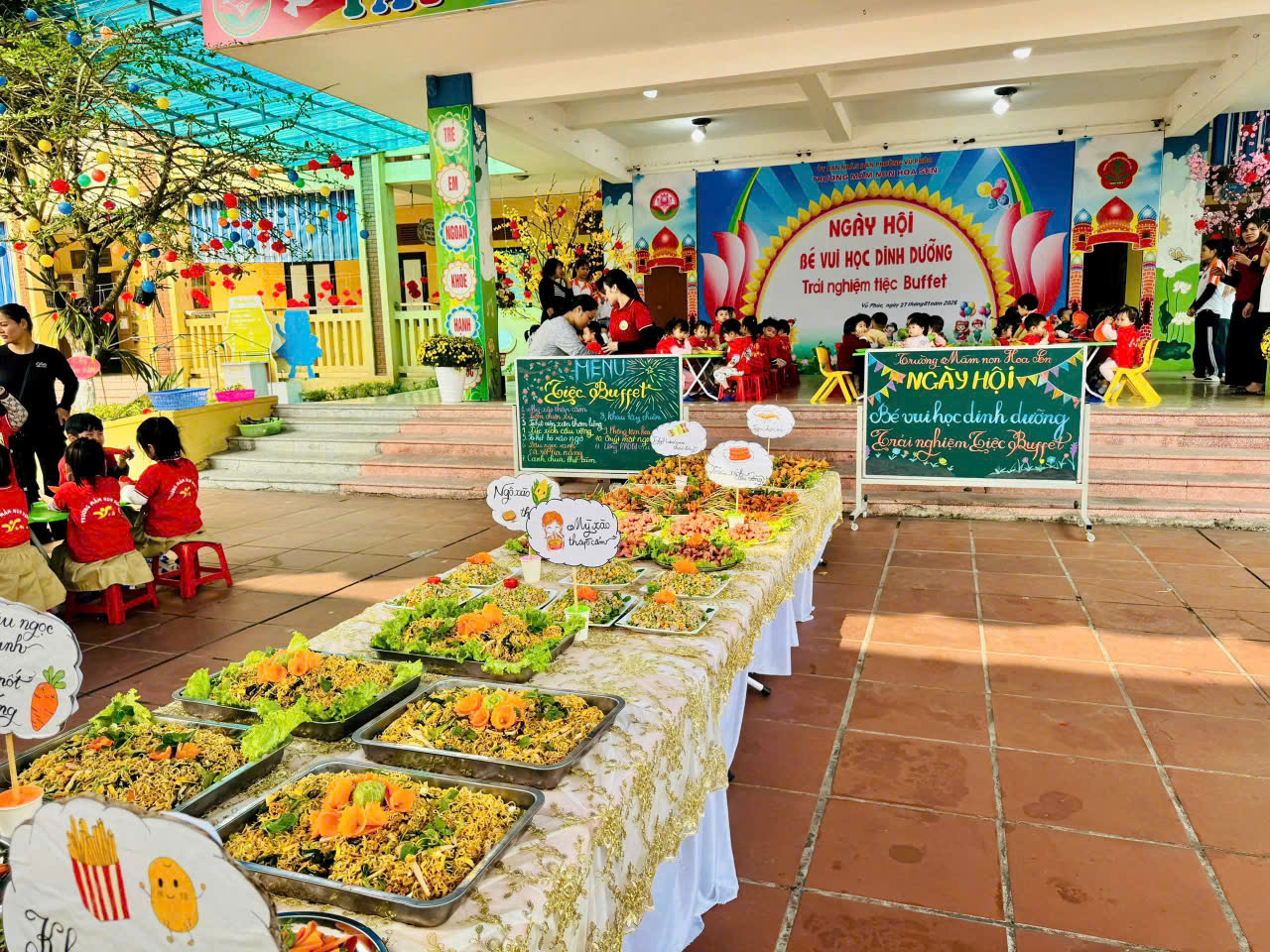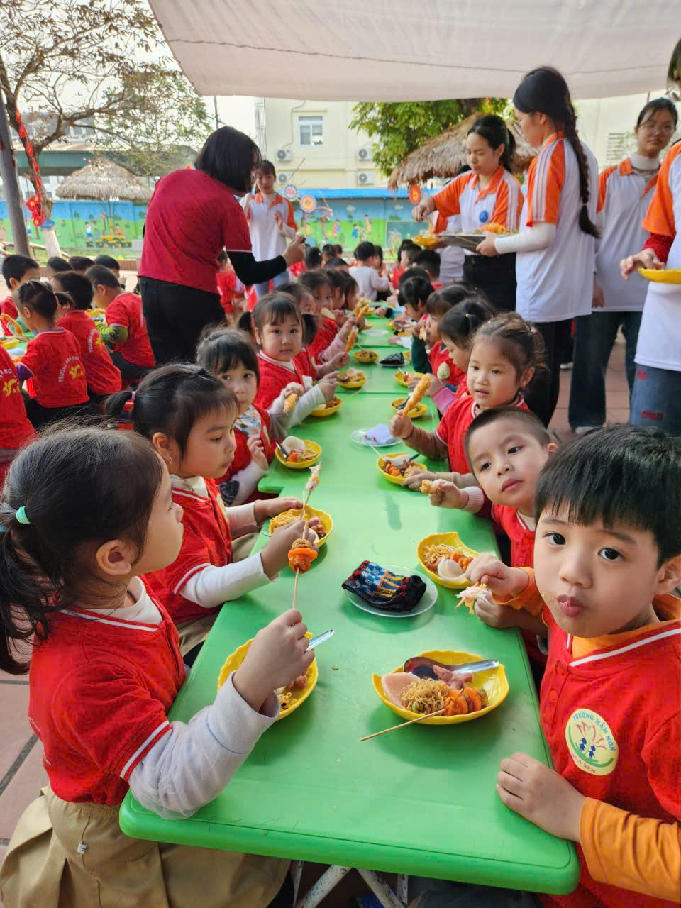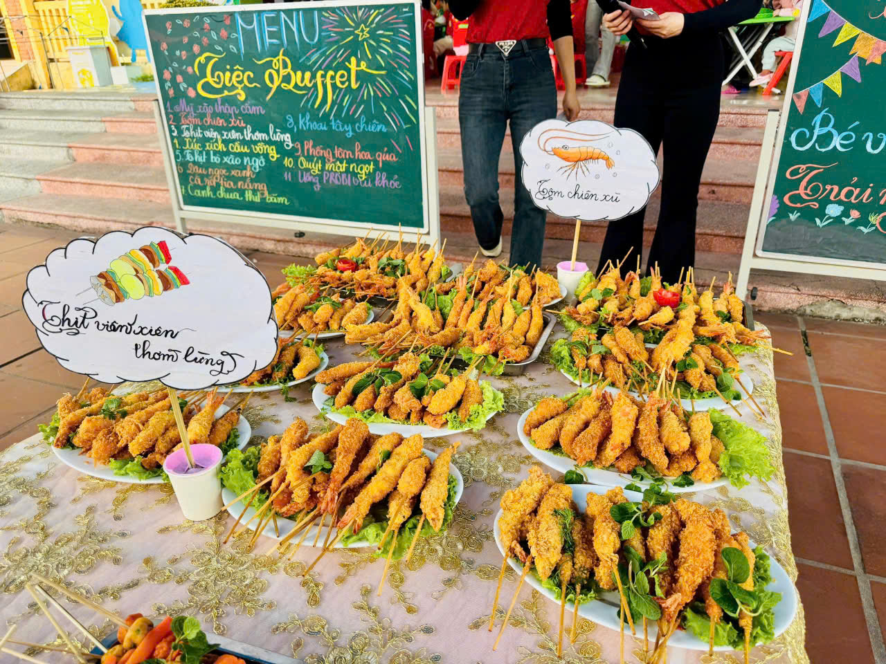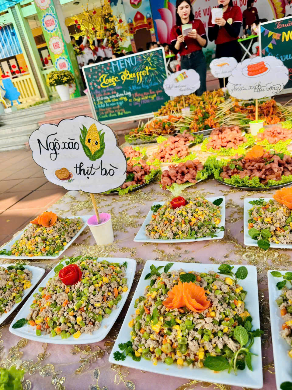 🌻Không chỉ dừng lại ở kiến thức, ngày hội còn mang đến trải nghiệm tiệc Buffet đầy màu sắc. Các con được tự tay lựa chọn món ăn yêu thích, thực hành kỹ năng tự phục vụ, giữ gìn vệ sinh và biết chia sẻ với bạn bè. Mỗi món ăn không chỉ ngon miệng mà còn chứa đựng tình yêu thương, sự tận tâm của các cô giáo, nhân viên nuôi dưỡng, các em giáo sinh và sự đồng hành quý báu từ các bậc phụ huynh.