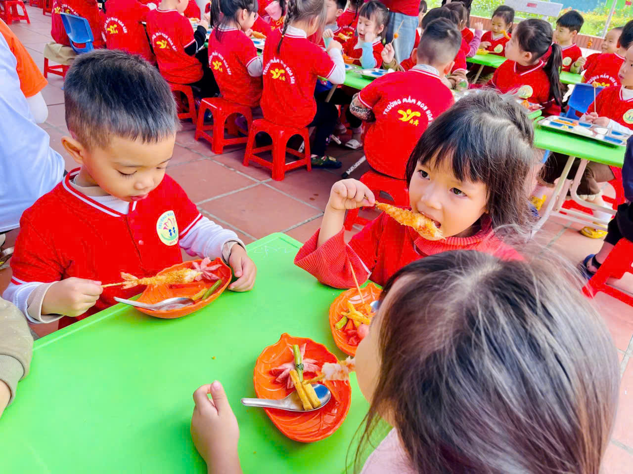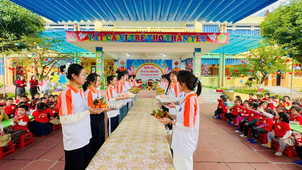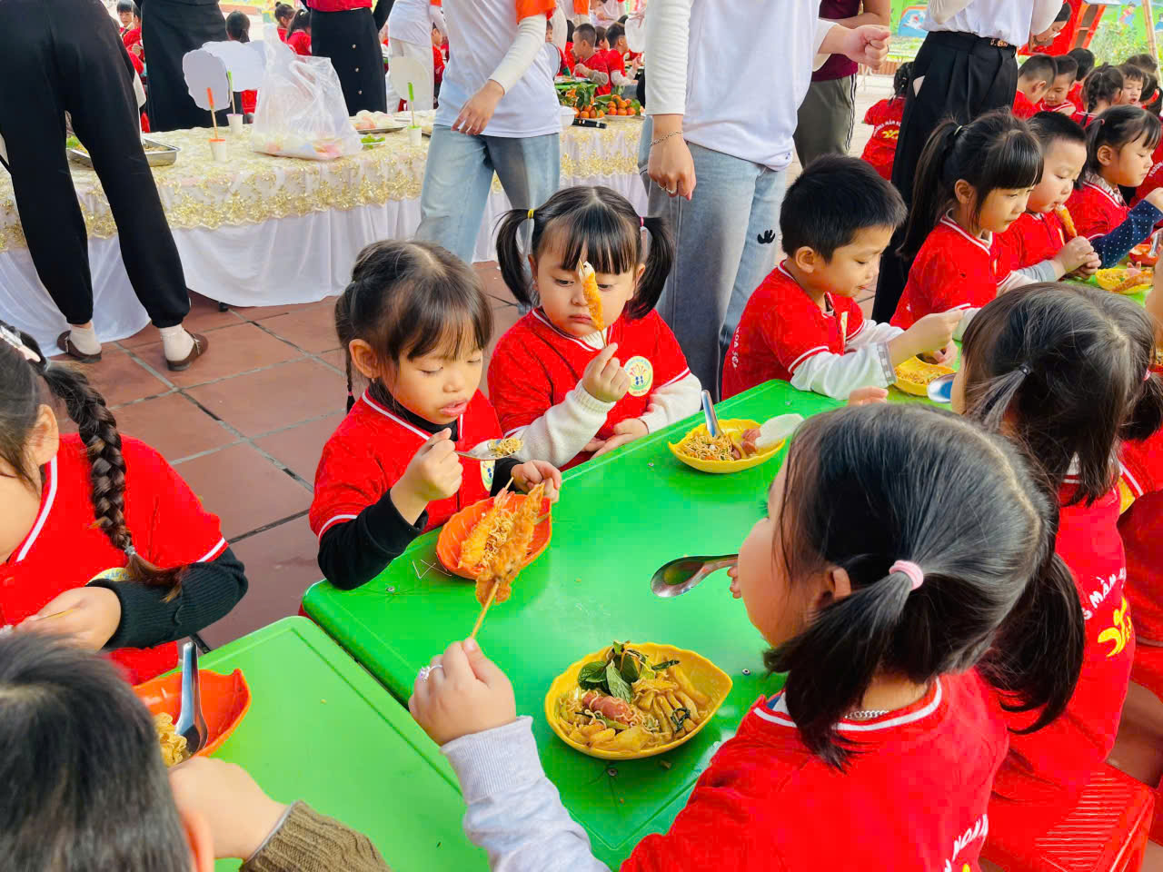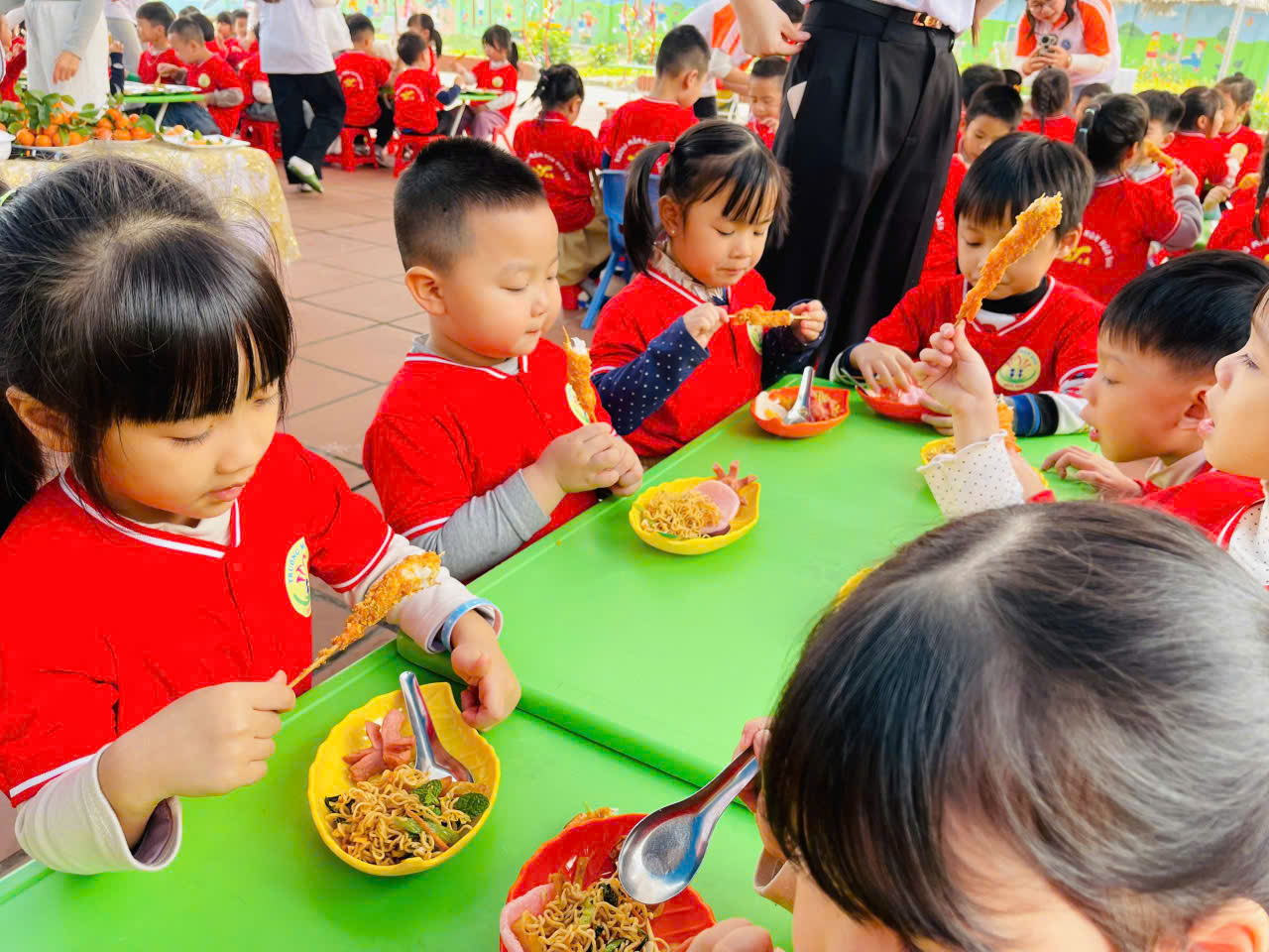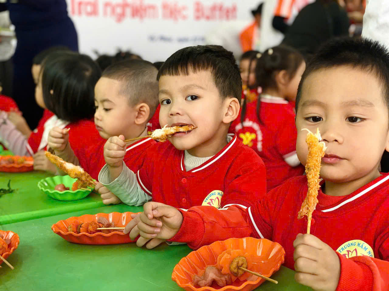 🌻Không chỉ dừng lại ở kiến thức, ngày hội còn mang đến trải nghiệm tiệc Buffet đầy màu sắc. Các con được tự tay lựa chọn món ăn yêu thích, thực hành kỹ năng tự phục vụ, giữ gìn vệ sinh và biết chia sẻ với bạn bè. Mỗi món ăn không chỉ ngon miệng mà còn chứa đựng tình yêu thương, sự tận tâm của các cô giáo, nhân viên nuôi dưỡng, các em giáo sinh và sự đồng hành quý báu từ các bậc phụ huynh.