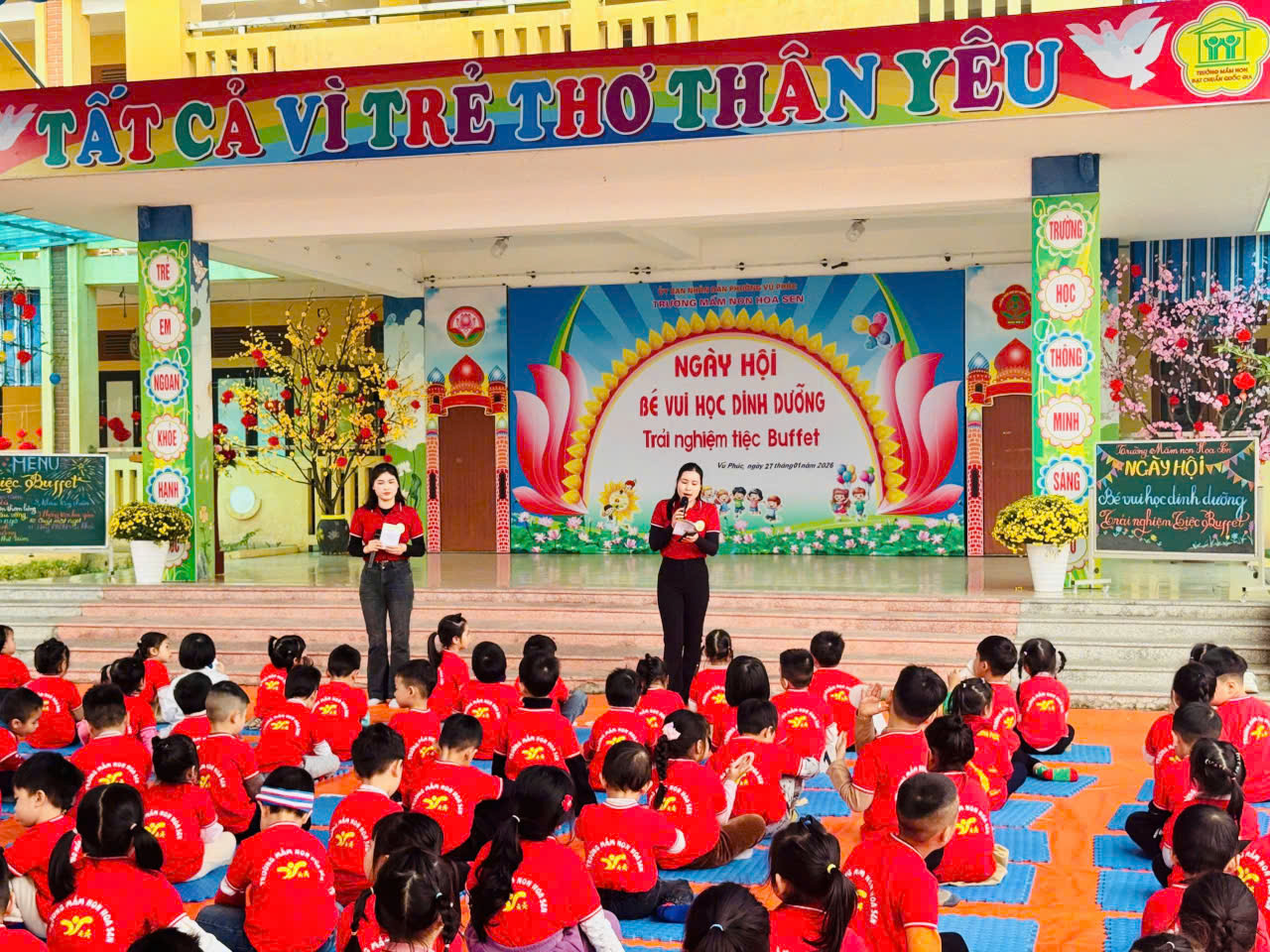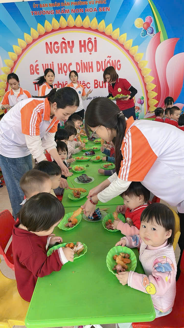 🌈 Với trẻ mầm non, mỗi ngày đến trường là một hành trình khám phá đầy yêu thương. Mỗi hoạt động trải nghiệm không chỉ mang lại niềm vui mà còn gieo vào tâm hồn trẻ những bài học đầu đời quý giá. Ngày hội “Bé vui học dinh dưỡng – Trải nghiệm tiệc Buffet” tại Trường Mầm non Hoa Sen đã mang đến cho các con một không gian học tập sinh động, ấm áp và thật nhiều niềm vui.