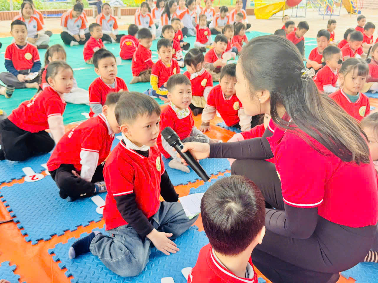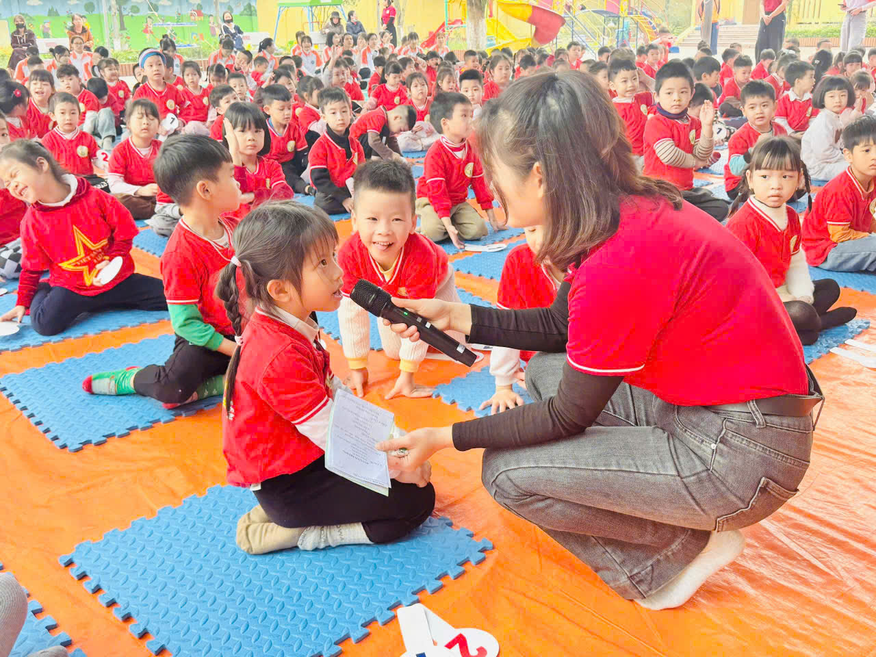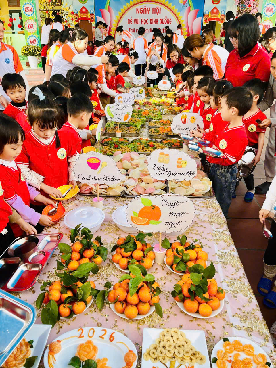 🍎Trong phần “Bé vui học dinh dưỡng”, các con hào hứng tham gia biểu diễn ca dao, đồng dao, trả lời 15 câu hỏi và 10 câu đố vui về kiến thức dinh dưỡng. Thông qua hình thức hỏi, đáp gần gũi, dễ hiểu, trẻ được làm quen với các nhóm thực phẩm, hiểu lợi ích của rau xanh, trái cây, sữa và những thực phẩm giàu dưỡng chất. Từ đó, các con dần hình thành thói quen ăn uống đủ chất, an toàn và cân đối. Những ánh mắt háo hức, cánh tay giơ cao và nụ cười rạng rỡ chính là minh chứng sinh động cho niềm vui học tập của các bé.