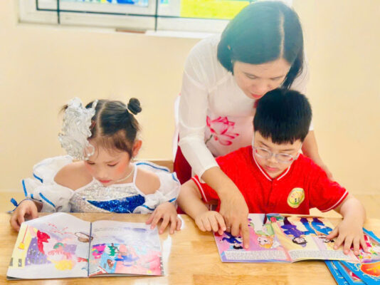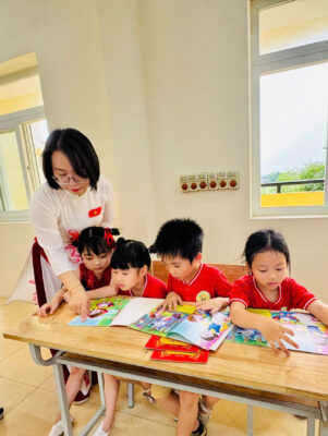 Các con còn được lắng nghe cô giáo Phạm Thị Tuyết Mai – Bí thư Chi bộ, Hiệu trưởng nhà trường giới thiệu về Trường Tiểu học Phúc Khánh bằng giọng nói gần gũi, ấm áp; đồng thời tham quan lớp học, các phòng chức năng và làm quen với sách giáo khoa – những “người bạn” sẽ đồng hành trong chặng đường học tập sắp tới.