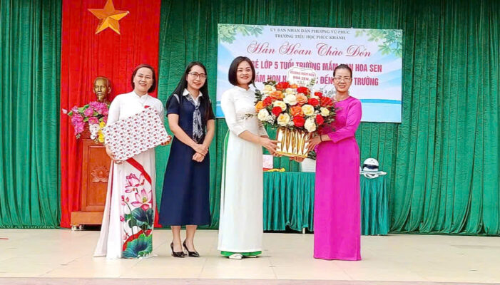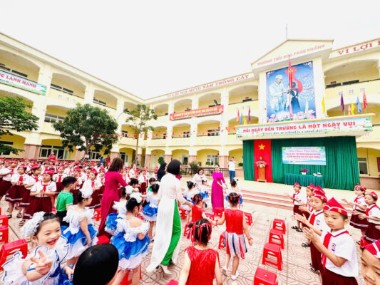 Ngay từ những giây phút đầu tiên, các con đã được Ban Giám hiệu cùng các thầy cô giáo Trường Tiểu học Phúc Khánh đón tiếp trong không khí ấm áp, thân thiện. Những nụ cười hiền hậu, ánh mắt trìu mến đã xóa tan sự bỡ ngỡ, giúp các con thêm mạnh dạn và tự tin.